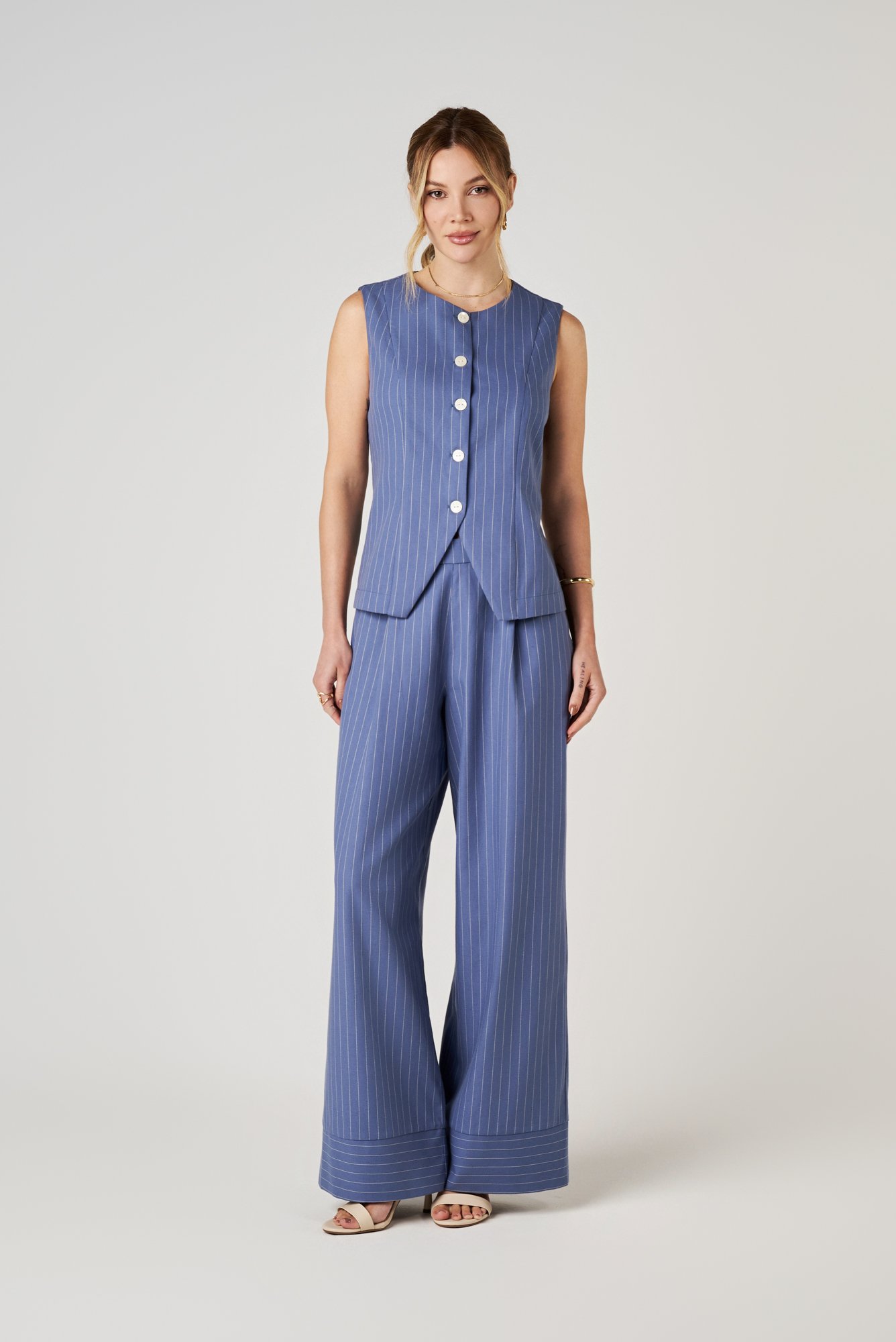 Versáteis e atemporais, nossas calças combinam perfeitamente com camisas sociais, blusas delicadas, coletes, blazers estruturados, e até regatas, permitindo composições que vão do formal ao casual, sempre com um toque de sofisticação. Seja para um dia no escritório ou para um evento especial, nossas calças são a base para um look poderoso e elegante.