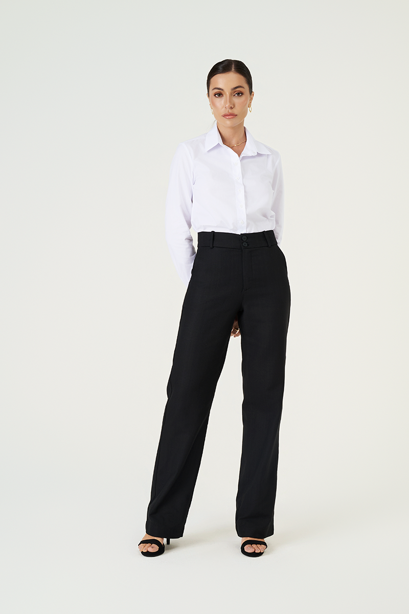 Montar um look equilibrado e elegante começa com a escolha certa da parte de baixo. Para um visual sofisticado, combine com camisas estruturadas, blusas em tricot ou sobreposições como blazers e coletes. Em momentos mais casuais, opte por regatas, croppeds ou malhas leves que adicionem modernidade sem perder o toque chic.